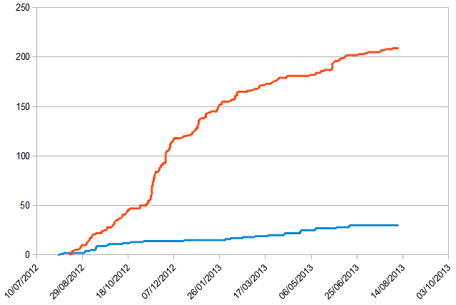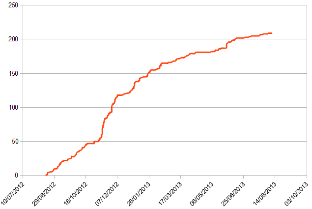 et je trace la somme cumulée sur tous ses tweets