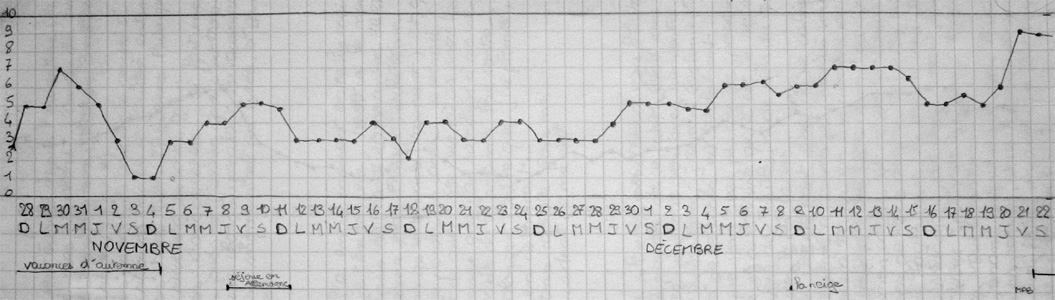 noter mon humeur, chaque soir, sur une échelle de 0 à 10.