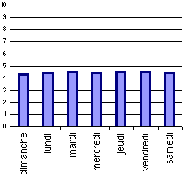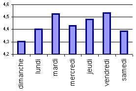 Autre chose, si on fait la moyenne pour chaque jour de la semaine, on a ça :