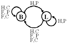pour l'événement (H,P), ->L avant et ->B après.