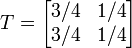 On peut traduire le graphe par une matrice de transition :